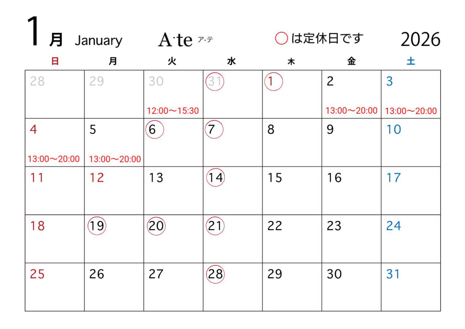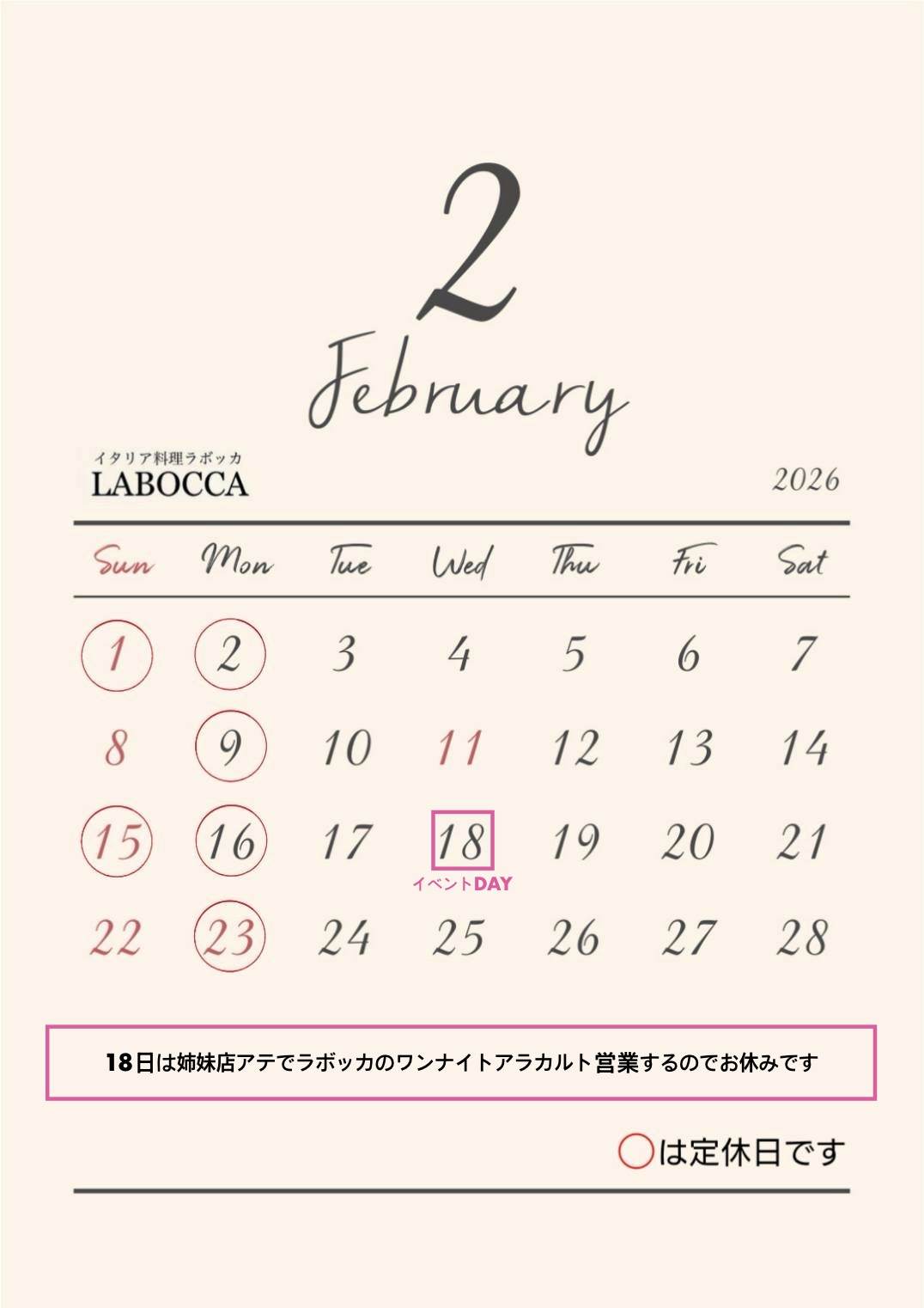 今月もよろしくお願いします。 【LABOCCA ラボッカ】 【A.te ア・テ】