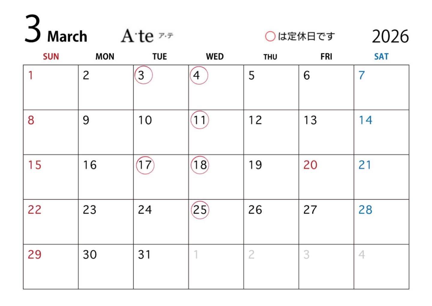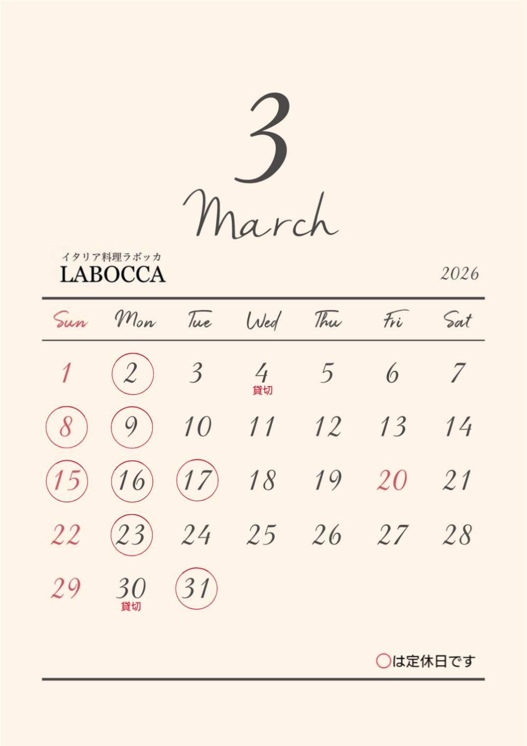 今月もよろしくお願いします。 【LABOCCA ラボッカ】 【A.te ア・テ】